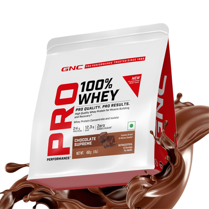 GNC Pro Performance 100% Whey Protein is made to support your daily workouts, faster recovery, and steady muscle progress, without feeling heavy on your stomach.
